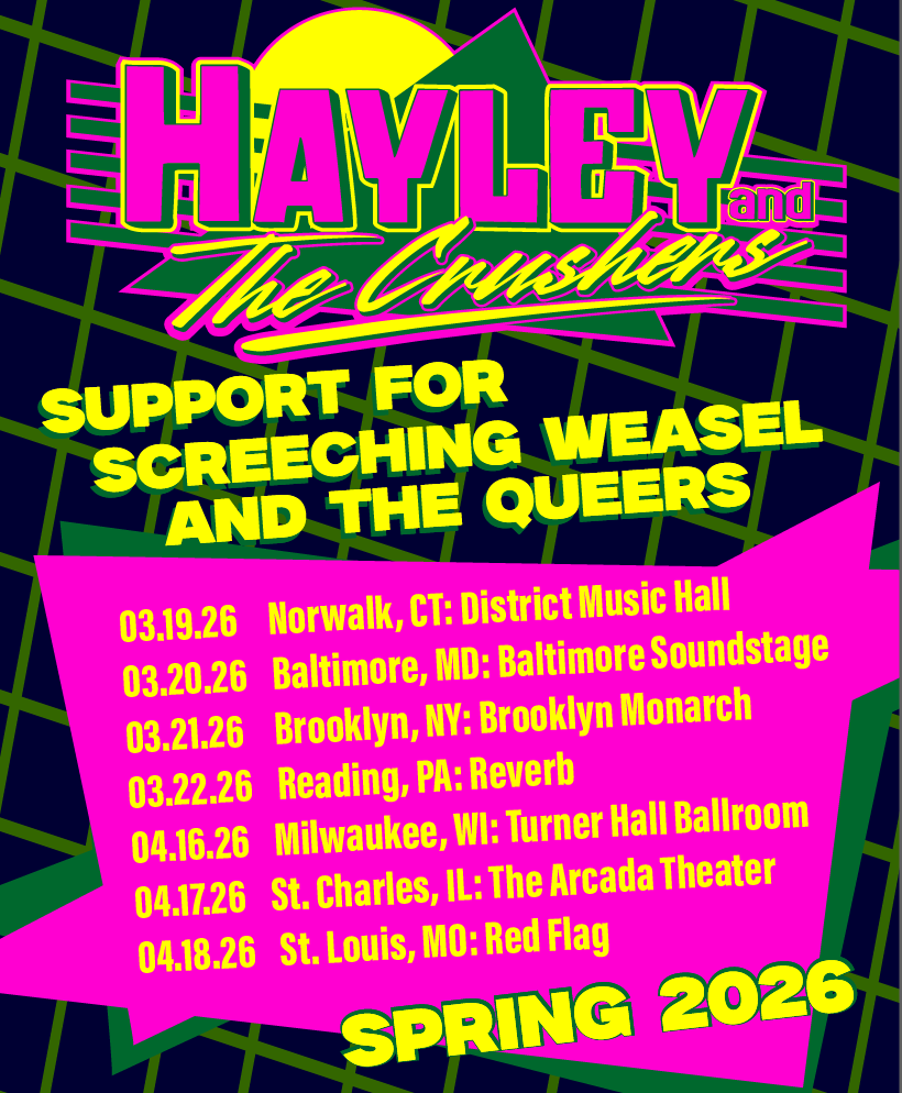 Hayley and the Crushers will be touring this spring and they’ll be opening for punk legends Screeching Weasel and The Queers, along with playing a few of their own headline shows.